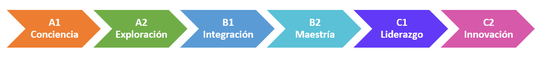 - Entusiastas (B1): experimentan con herramientas digitales para una variedad de propósitos, tratando de entender qué estrategias digitales funcionan mejor en función del contexto.