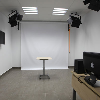 La Sala Polimedia está compuesta por un equipo multimedia capaz de generar productos audiovisuales en alta definición. A grandes rasgos, la sala se divide en dos escenarios: la mesa de control, dirigida por el técnico Polimedia, y la zona de grabación. En esta última el ponente es el protagonista.
