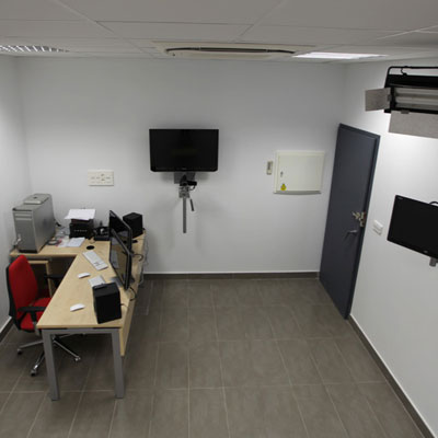 La Sala de Videoconferencias cuenta con 20 puestos de trabajo y está ubicada en la 1ª planta del Pabellón 5, anexo al Vicerrectorado de Enseñanza Virtual (VEV).