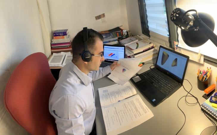 El profesor Josep Martínez Polo defendió su investigación sobre las plataformas colaborativas, para lo que la Universidad Católica habilitó un entorno virtual con dos salas, una pública, donde se desarrolló la defensa, y otra privada, en la que deliberaron los miembros del tribunal compuesto por Andrés Pedreño, (Universidad de Alicante), Mikko Villi (Jyväskylä, Finlandia) y Manuel González-Sicilia (UCAM).