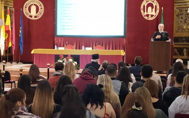 Monseñor Bruno-Marie Duffé, secretario del Dicasterio para el Servicio del Desarrollo Humano Integral, ha impartido la conferencia 'Significado y contenido del Desarrollo Humano integral' en el Campus de Los Jerónimos esta mañana
