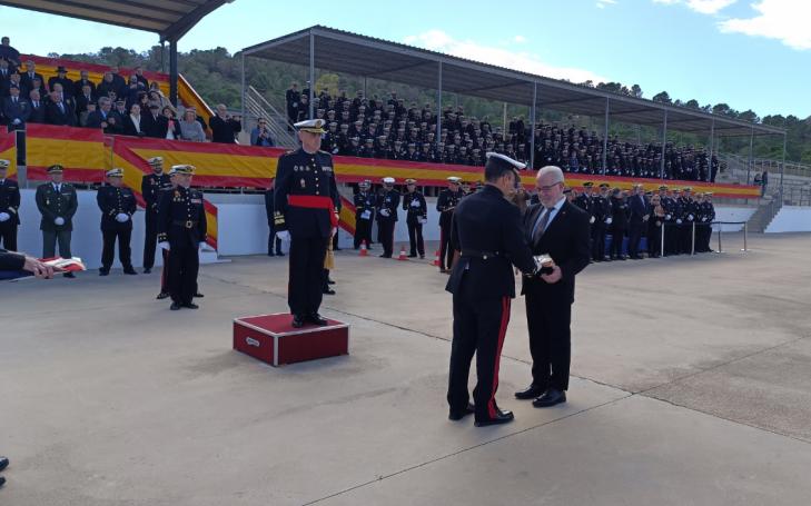 En la Escuela de Infantería de Marina ‘General Albacete y Fuster’ se ha realizado la entrega de este reconocimiento, que el director general de la UCAM ha dedicado a su hermano y fundador de la Universidad, José Luis Mendoza, quien en 2022 recibió este mismo galardón, y a la esposa de éste y actual presidenta de la institución, María Dolores García