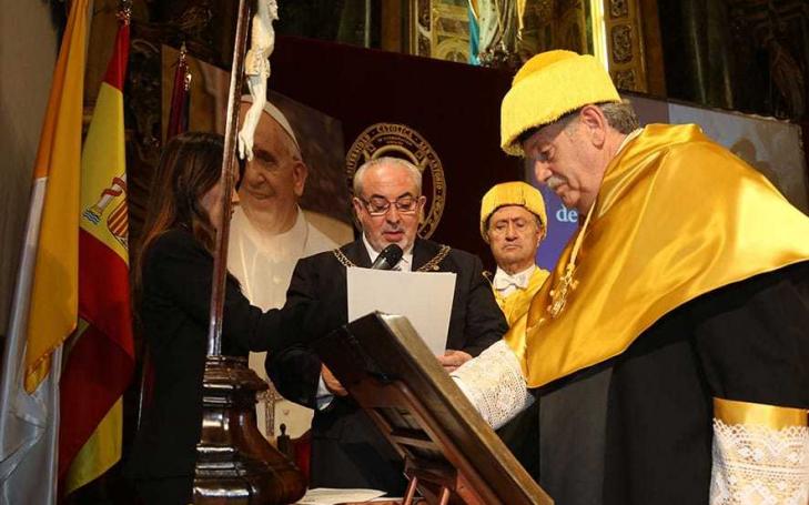 El nuevo Doctor Honoris Causa por la UCAM, Stephen P. Abelow, que ha sido presentado por el doctor Pedro Guillén, ha disertado sobre los últimos avances en la cura de las lesiones del cartílago, durante la Festividad de San Antonio de Padua, patrón de la UCAM.