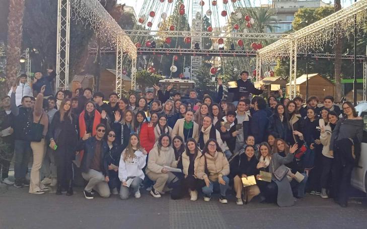 Más de 1500 estudiantes de la UCAM felicitan la Navidad por las calles de Murcia