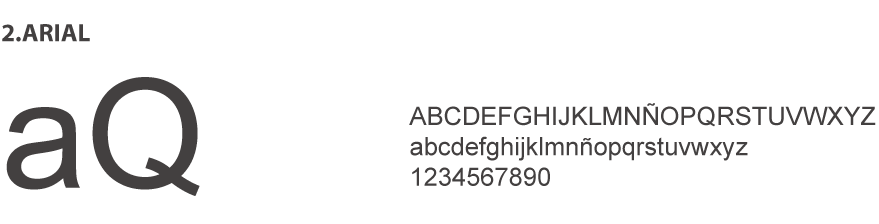 La conocida tipografía Arial es la segunda tipografía corporativa UCAM. Se utilizará en la mayoría de los documentos, webs, etc. Se ha elegido por su universalidad y facilidad de uso de cara a las necesidades comunicativas de una amplia comunidad universitaria. Cuenta con versión regular y bold.