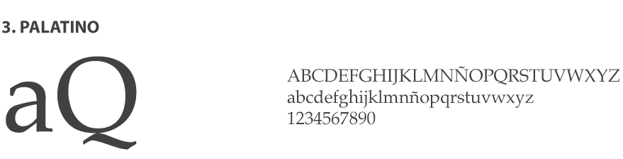 Palatino es una tipografía muy extendida. Está concebida para proyectos de carácter científico e investigador. Es una tipografía básica de la marca UCAM.